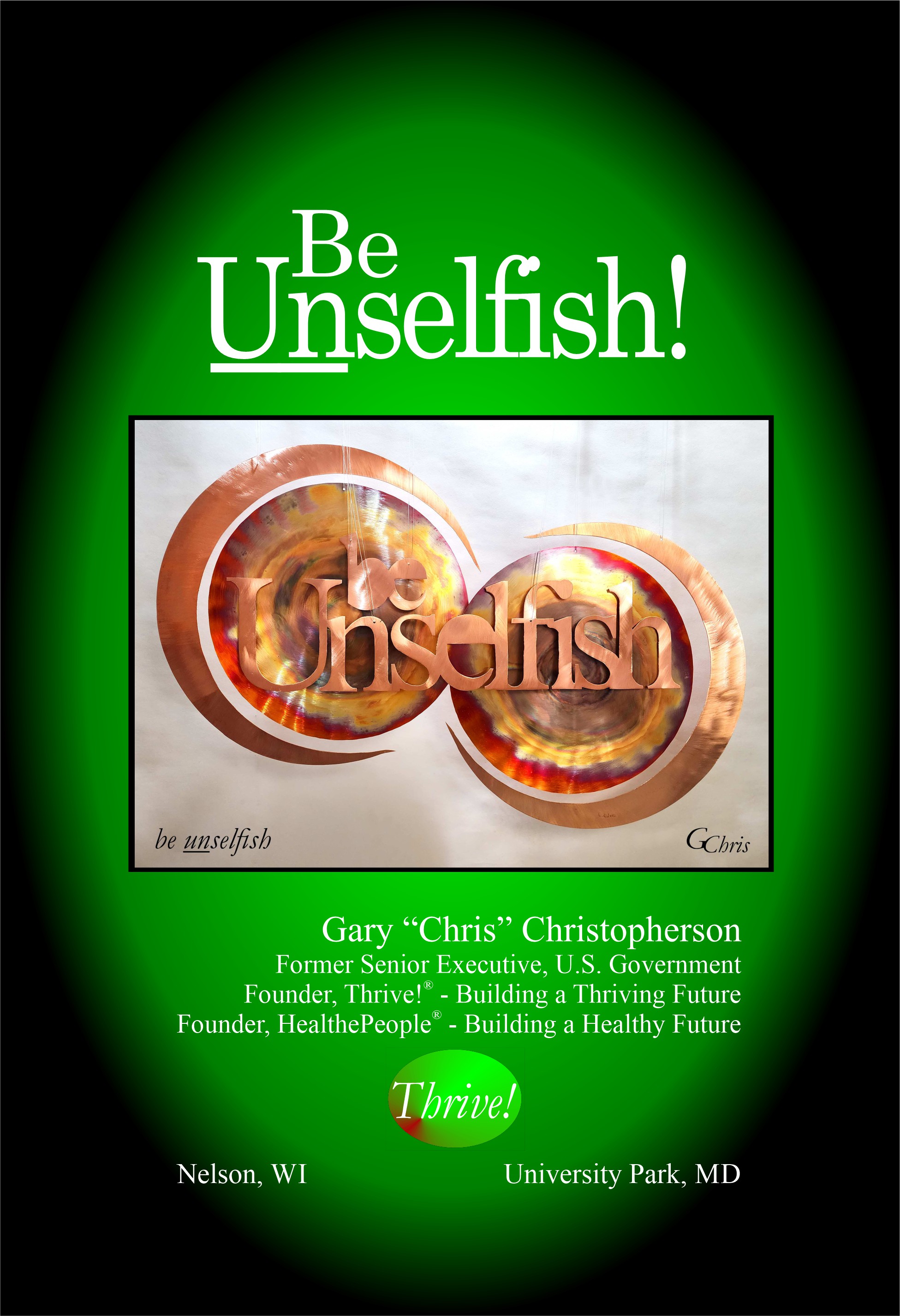 Be Unselfish!. How to Survive and Thrive While Being Unselfish Important to understand that early extinction need not be our future. Early extinction is our future only if we continue to behave to cause this very bad future. Be unselfish. |